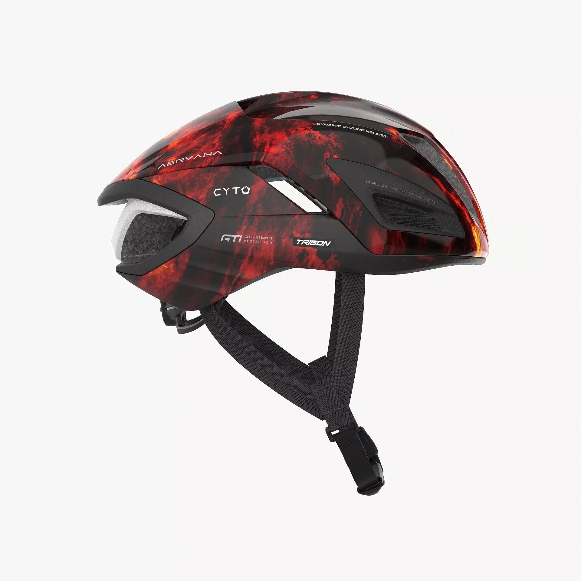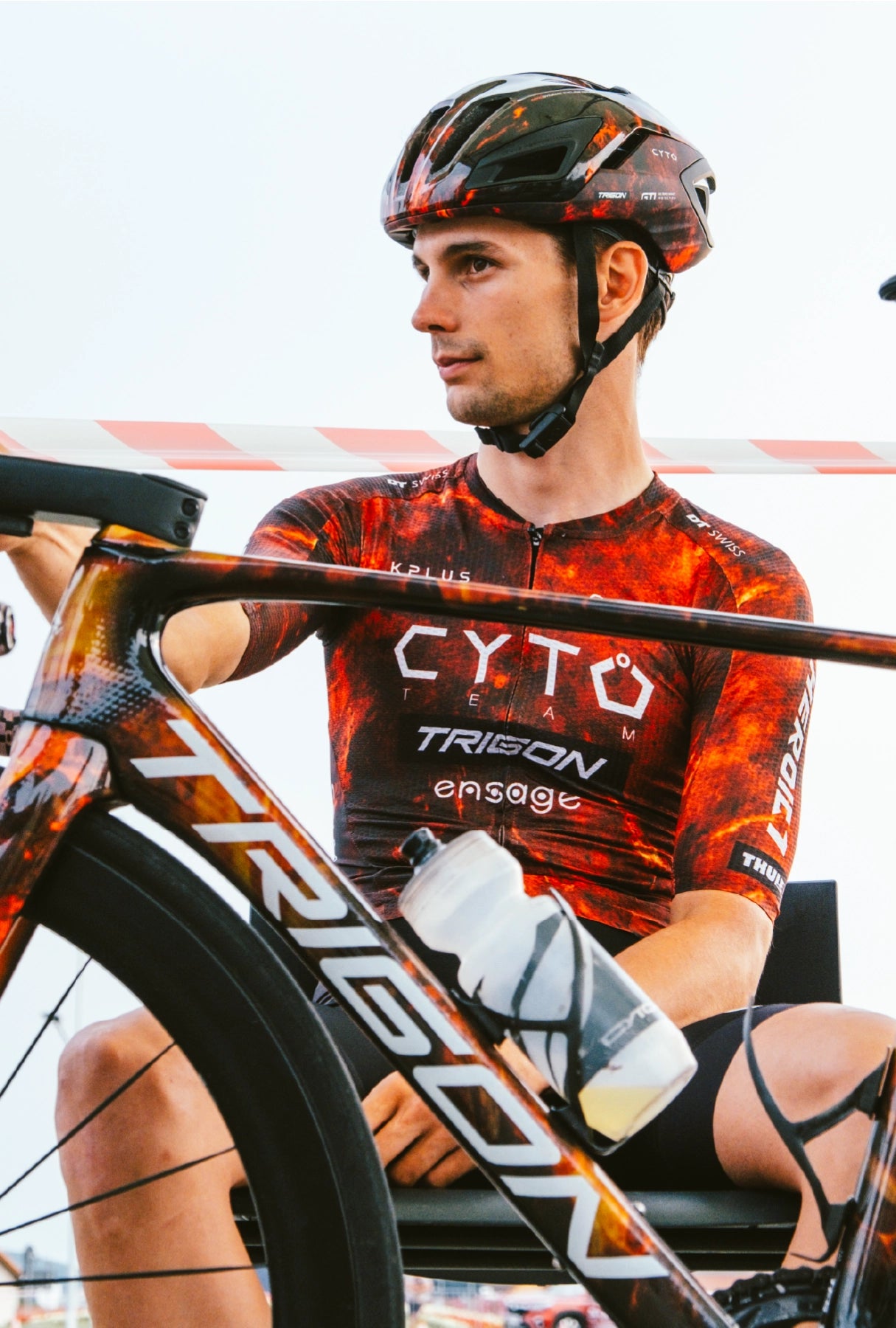 Team CYTO TRIGONデザインは、「溶岩」をモチーフに、地中深くに眠るエネルギーが地表へと噴き上がる瞬間を描き出しています。その力強い動きを、極限に挑むライダーの躍動と重ね合わせ、“新たな始まり”と“限界突破”を象徴するグラフィックへと昇華しました。挑戦を続けるライダーの内なる力を呼び覚ますデザインです。