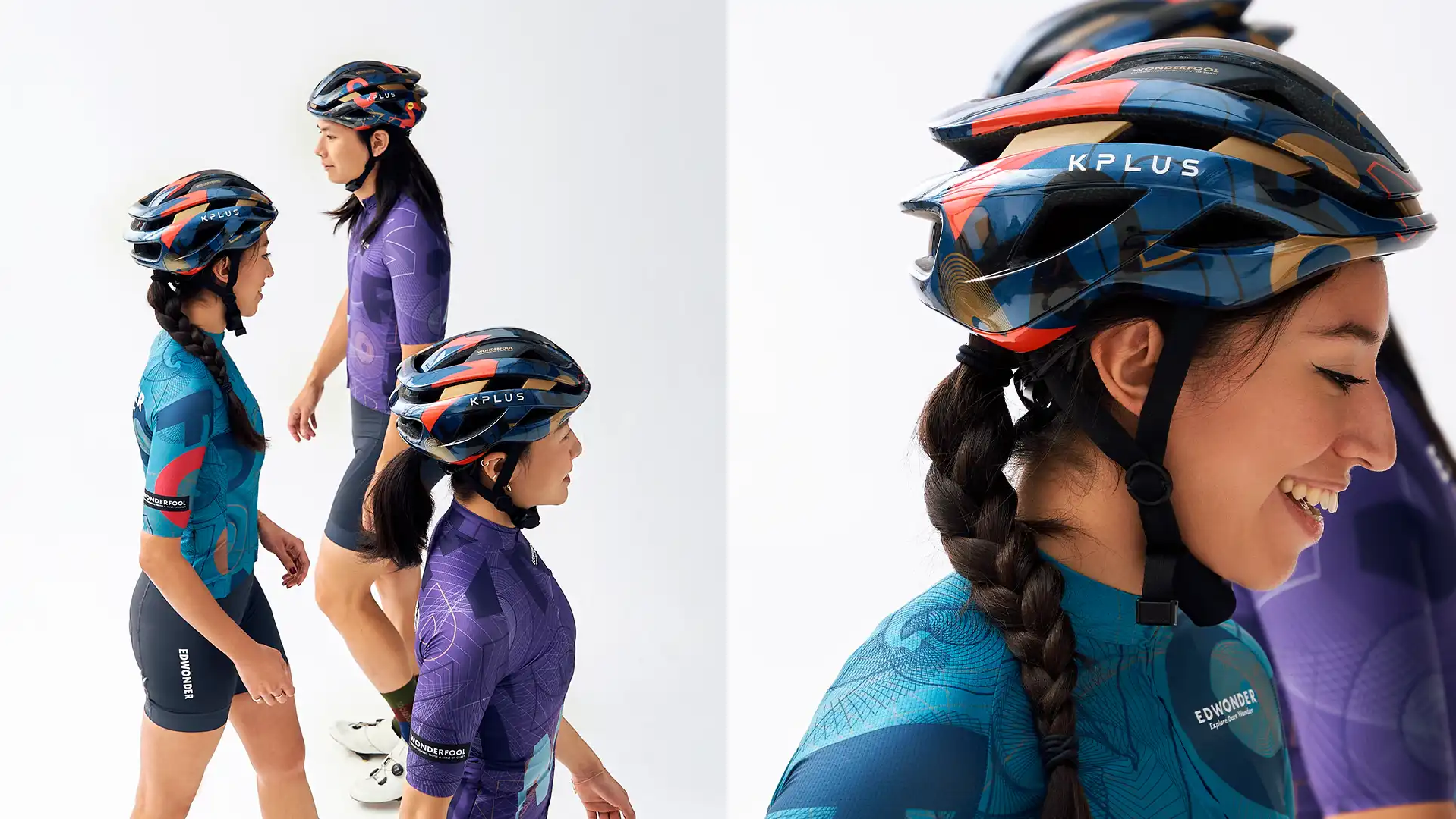 ニューヨークと上海を拠点に活動する、新進気鋭のサイクルファッションブランド「EDWONDER」とのコラボレーションによって誕生した「ALPHA|EDWONDER x KPLUS」洗練されたフォルムと高い機能性を両立させた、新世代のオールラウンドヘルメット「ALPHA」に大胆なグラフィックが施されたスペシャルモデルです。