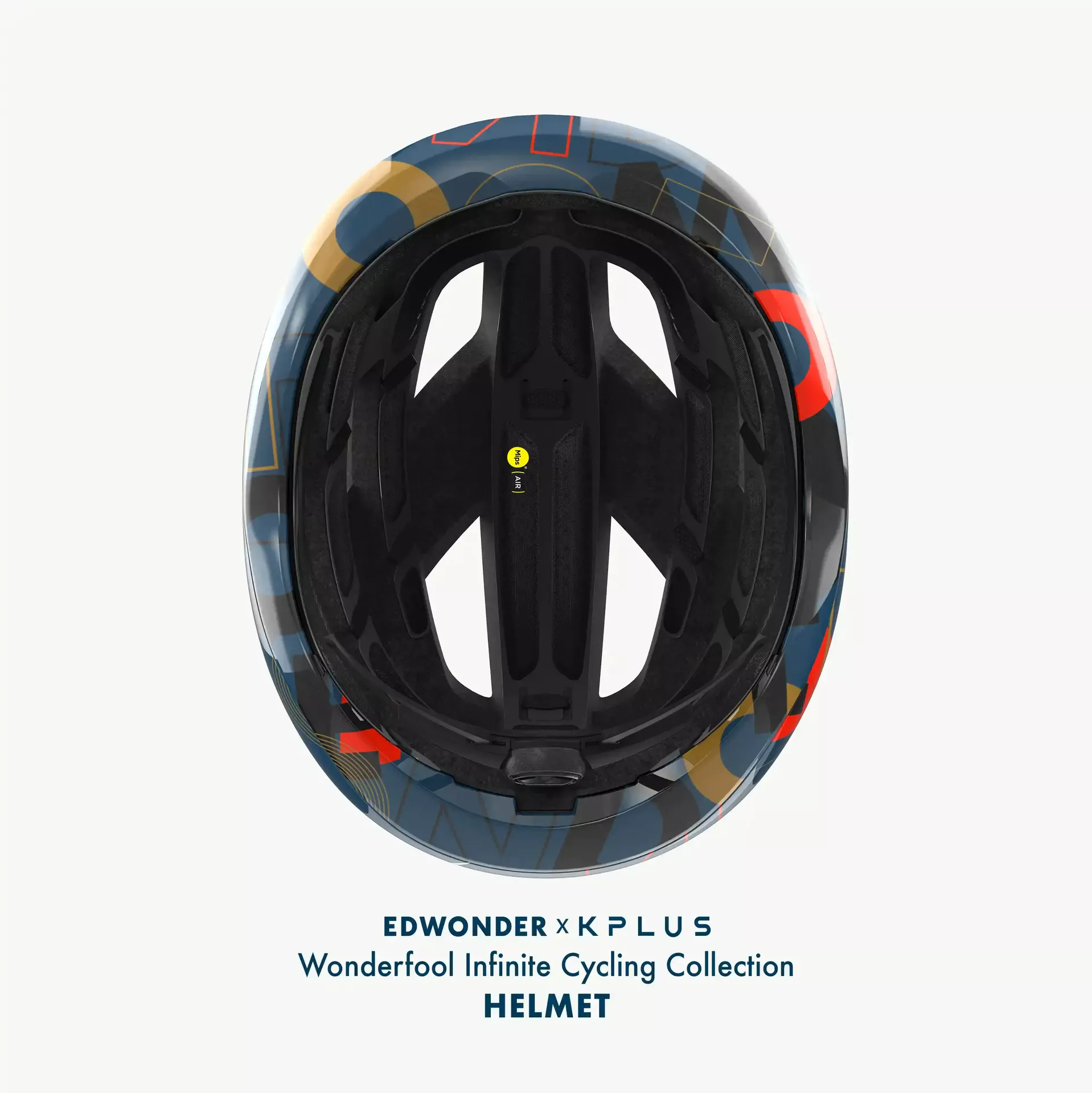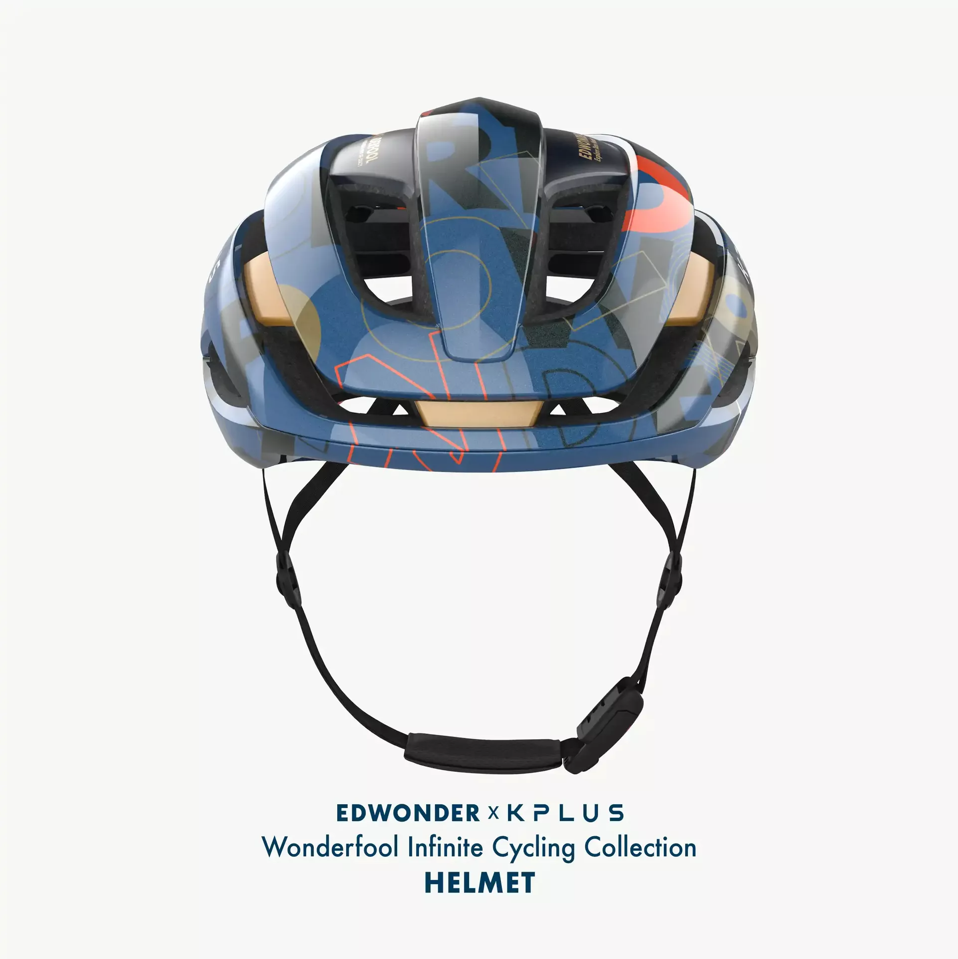 無限に続く幾何学模様と、ヴィヴィットなタイポグラフィーの組み合わせで、EDWONDERが展開する「Wonderfool Infinite」コレクションの世界観を視覚的に表現。近年のサイクルファッションにおけるノームコアやアースカラーといったトレンドとは一線を画す、唯一無二のルックスがヒップなサイクルヘルメットです。