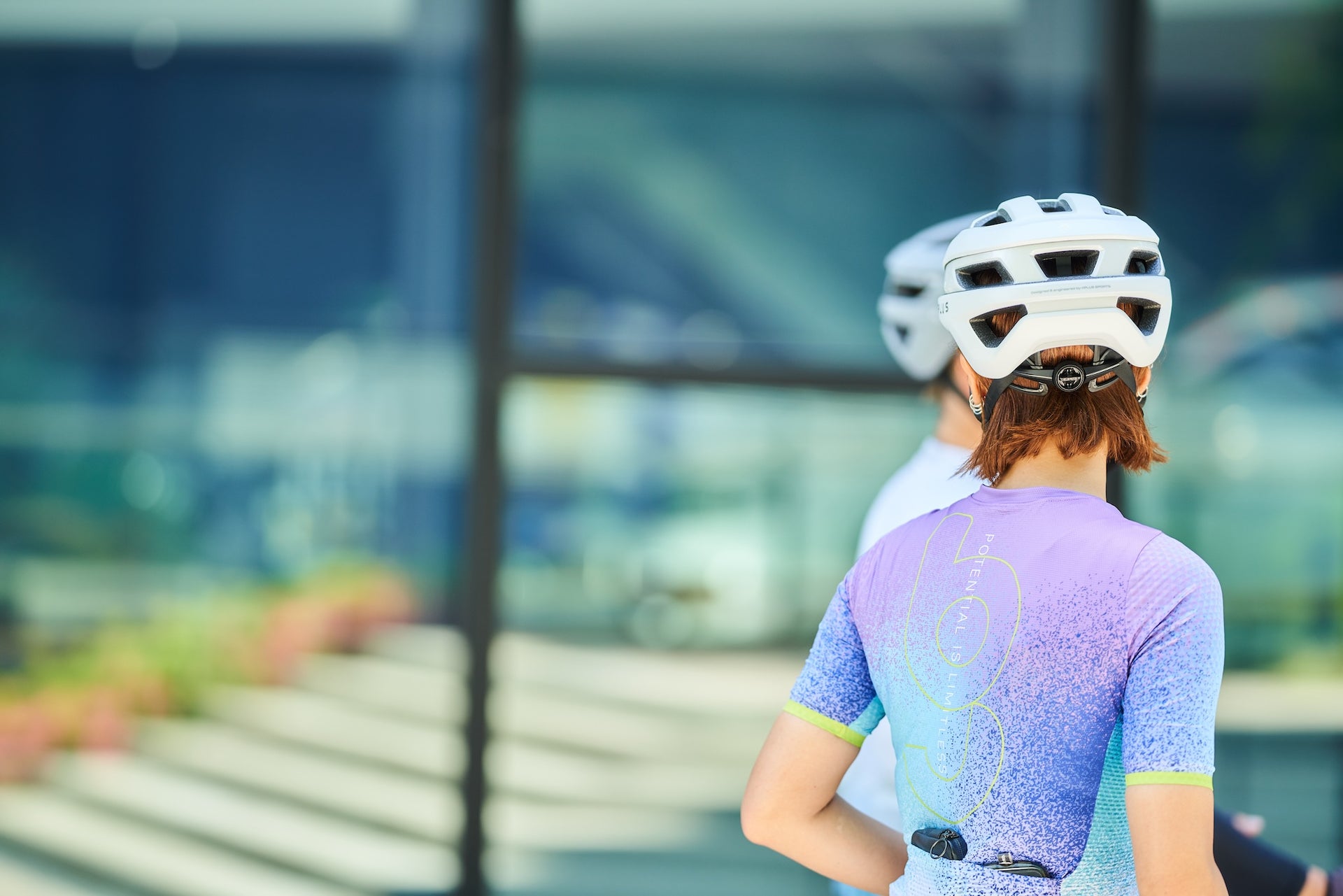 乗車姿勢を取った際にヘルメットの重心位置が、頚椎の上部付近に来るように重量配分をバランスして設計しています。着用してみると重量による負担を感じにくく、長時間のライドでも頸部が疲れないような工夫が施されています。