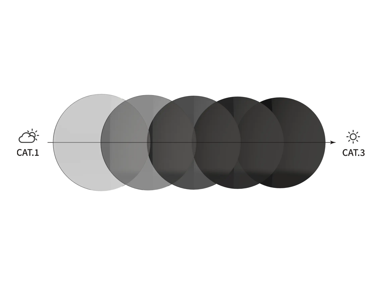 SOLARは調光レンズを採用しています。 レンズに受ける紫外線の量に応じて レンズの透過率が8%~80%の間で変化。常に最適かつ安全な視界をあなたに提供します。