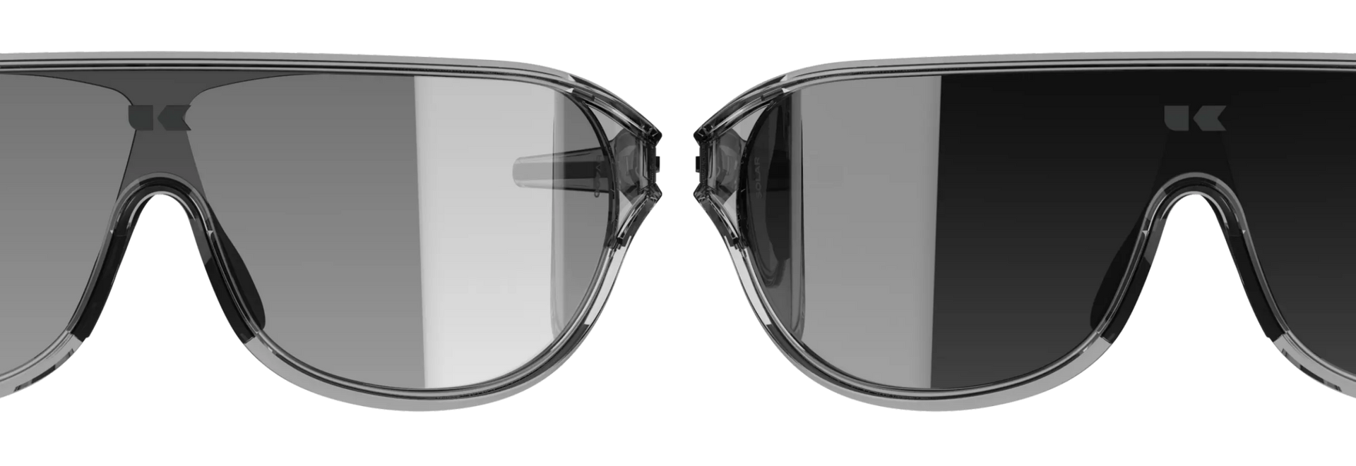 KPLUSが展開するアイウェアコレクションKU | EYEWEARの「SOLAR™」は、 光に合わせてレンズの色合いを変える調光レンズを搭載し、トレンドのクリアフレームを採用した、ファッション性と機能性を高い次元でバランスしたスポーツグラスです。